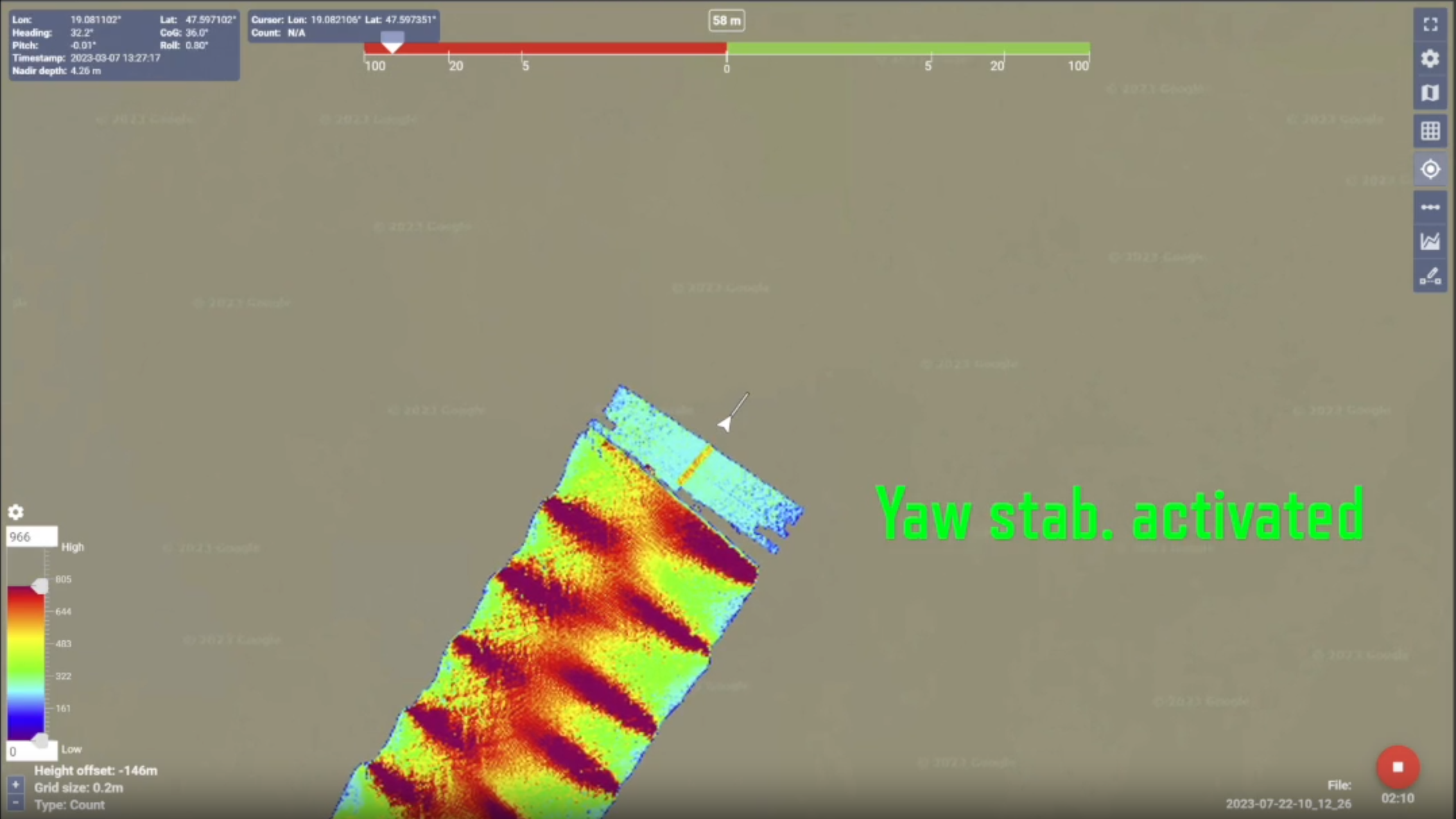In addition to roll stabilisation, the iWBMS X Stabilised sonar offers pitch and yaw stabilisation with 1024 beams per ping, providing fully motion-stabilised data and evenly distributed soundings on the seafloor.